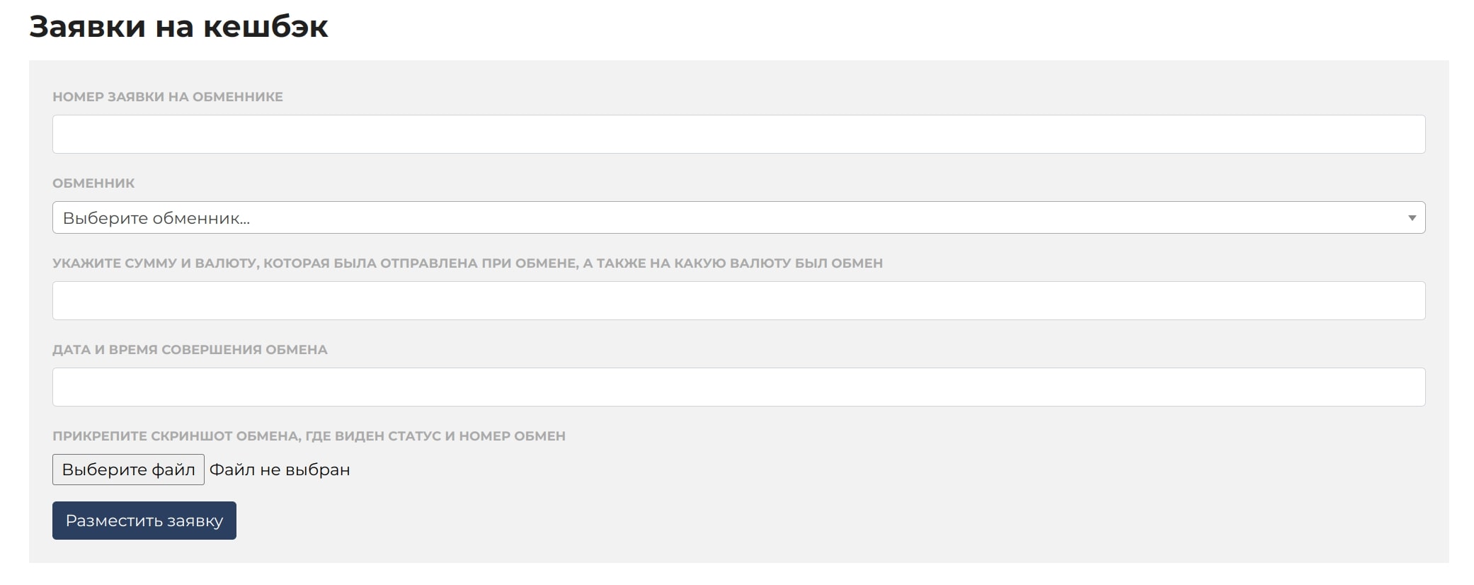 - Подайте заявку для начисления кешбэка, заполнив специальную форму в личном кабинете.